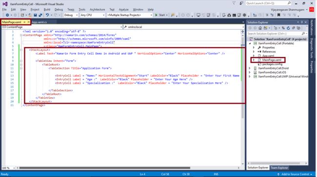 Reading this article, you will learn how to use Entry Cells with Table View in Xamarin Forms application for Android and Universal Windows Platform with XAML and Visual C# in cross platform application development.