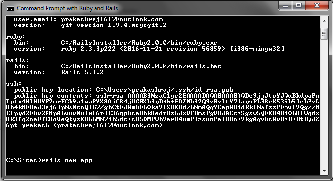 - After opening the command prompt, let’s create a new application in rails using the following code.