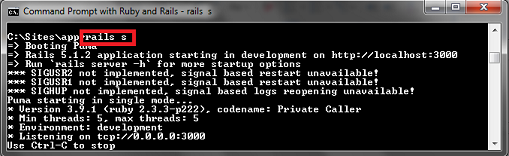 - Open the Ruby On Rails Command Prompt By Going To Start >> All Programmes >> Railsinstaller >> Command Prompt with Ruby and Rails.