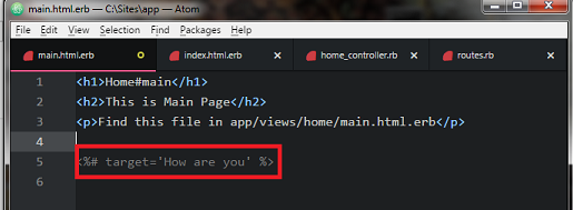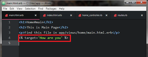 - The above code will create a target variable and assign the text ‘How are you’ in a non-out printing ERB tag.