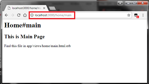 To view the newly created HTML template files in our browser go to localhost:3000/home/main for the main page, and for the index page visit localhost:3000/home/index in yoru search bar. Before we open the template please confirm the rails server is ON, if not you can start it using this code in your Rails command prompt.