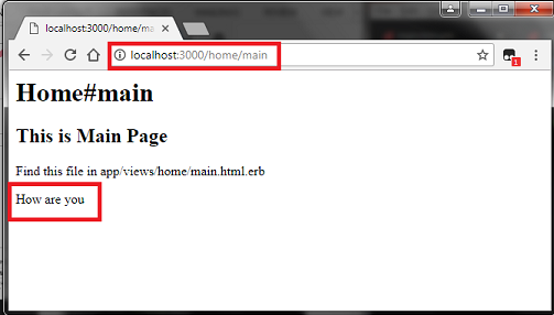 - Let’s add some text in ERB tag inside main.html.erb file the ERB code given below.