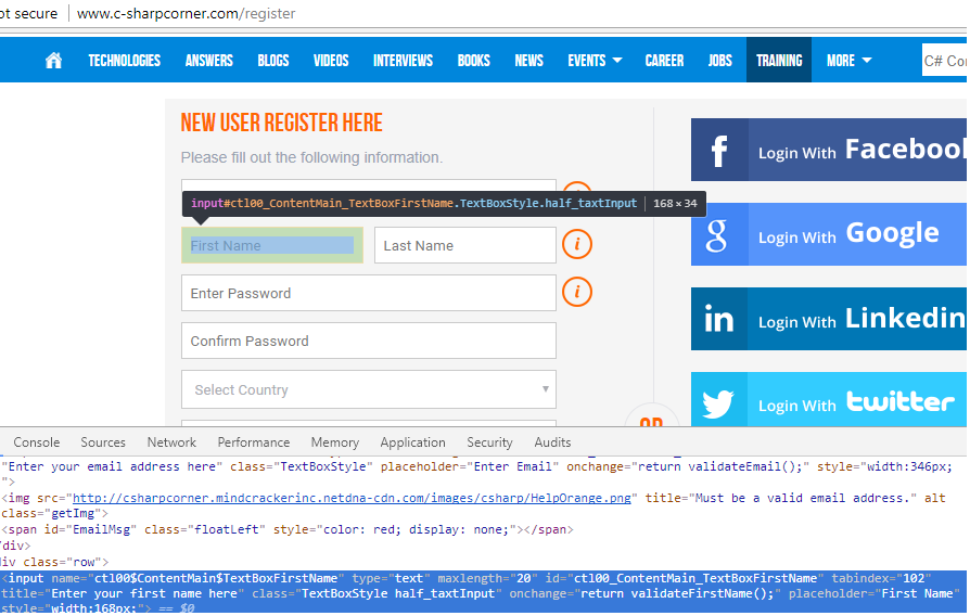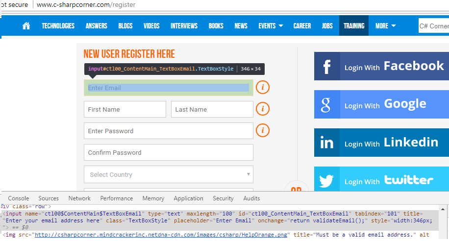 In the below example we will see how to automate C# corner Signup page using Selenium Webdriver C# and Javascript.