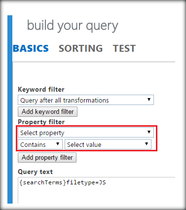 In the Query transform section, we can specify the query that will be used to filter the search results.