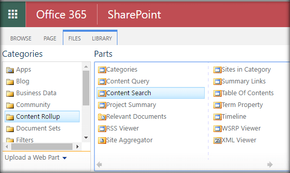 We also have the option to use the newly created result source in Content Search Web Parts. In order to test it out, add the Content Search Web part to the page.