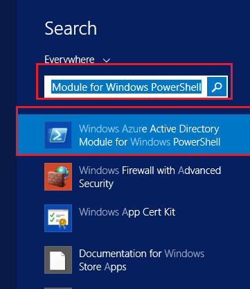 After installing the above two prerequisites, we can view “Windows Azure Active Directory Module for Windows PowerShell” in our search window.