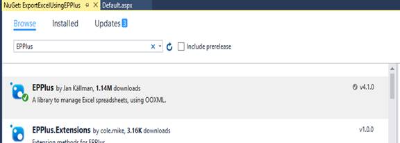 We are going to use EPPLus library in this article. It is an open source library and very easy to use for developers.