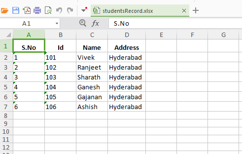 - string excelName = "studentsRecord";