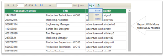 Report viewer version 11.0 uses the latest version of MS Excel (i.e. XLSX format). By default, this type of an extension supports 1,048,576 records per sheet. With this large data support, the users don’t get the maximum rows conversion issue while exporting into an Excel sheet.