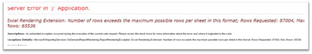 Solution for Excel Rendering Extension: Number of rows exceeds the maximum possible rows per sheet in this format; Rows Requested: XXXXX, Max Rows: 65536