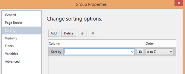Next, in the Sorting section, delete the sort by function.