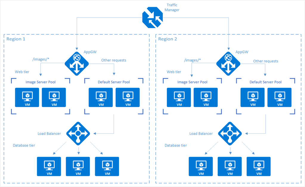 The following figure explains Traffic Manager, Application Gateway, and Internal Load Balancing architecture.