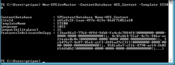 So, the bottom line is, we have to make sure that a site master based on the site template which we will use for fast site collection creation is already present in the content database. If it is not present we have to create a new site master using the command.