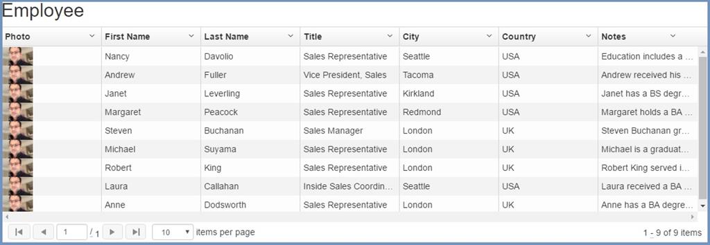 Once we are done with displaying the data in UI-Grid, using Web API, let’s do Filter functionality. Here is my grid with all the data and other features.