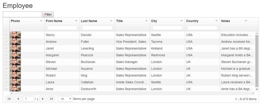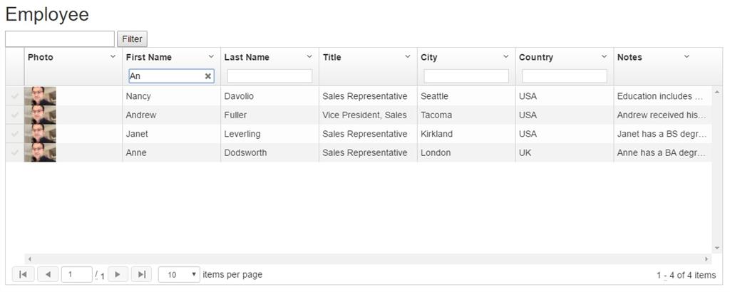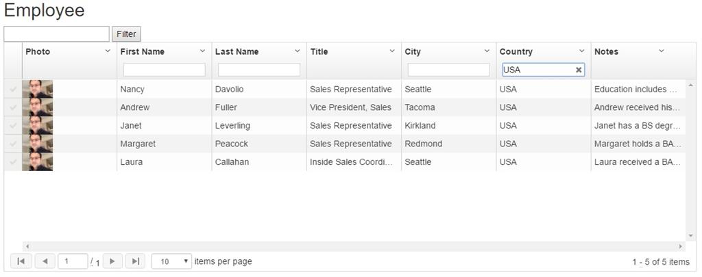 Let’s see how we can make use of an Inline Filter by every column of the grid.