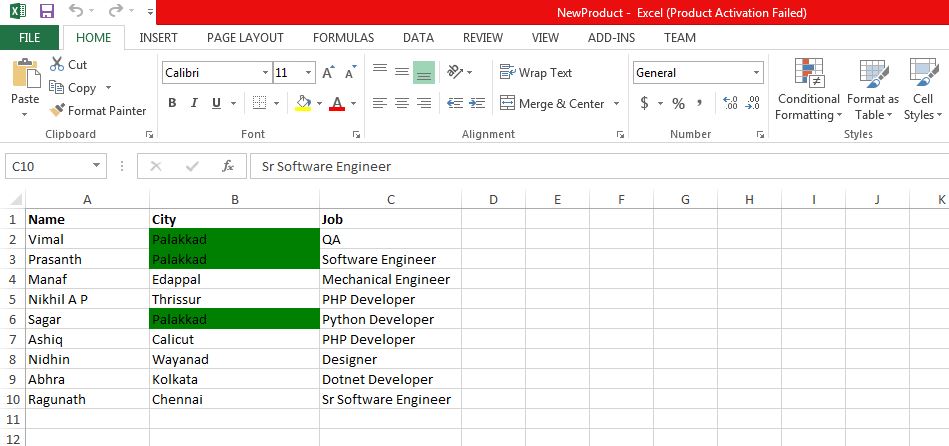 Highlighted data saved into the new excel sheet “NewProduct.xlsx“.