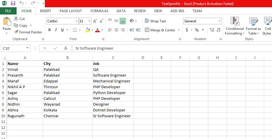 - workbook.LoadFromFile(@"C:\Users\RAJEESH\Desktop\TestSpireXls.xlsx", ExcelVersion.Version2013);