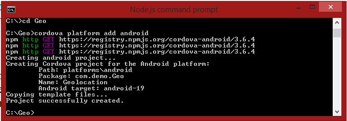 Now we will build this application for an Android phone only using the following command in Node.Js command prompt.