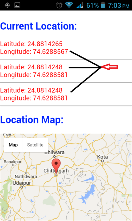 Now we will use this .apk file in Android mobile and see our Geolocation Mobile App output.