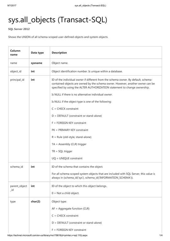 Note - sys.all_objects shows the UNION of all schema-scoped user-defined objects and system objects.