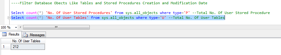 - Select count(*) 'No. Of User Tables' from sys.all_objects where type='U'