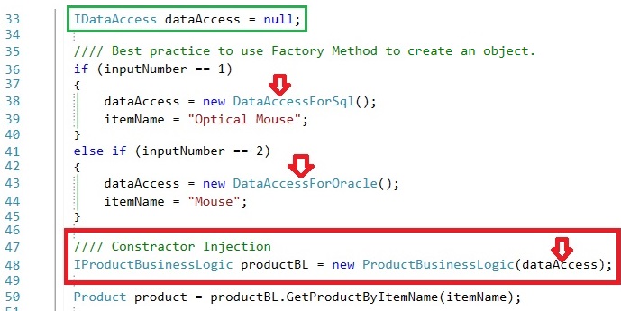 Just for easy understanding let's say, you have different implementation of the DLL. For example, IDataAccess has two implementations and these are DataAccessForSql and DataAccessForOracle. Depending on the customers sometimes you need DataAccessForSql and sometimes you need DataAccessForOracle. But tight coupling design will not help you in this scenarios.