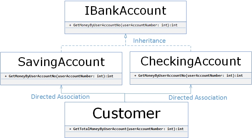 - The Customer depends on IBankAccount which doesn't mean that IBankAccount also depends on Customer.