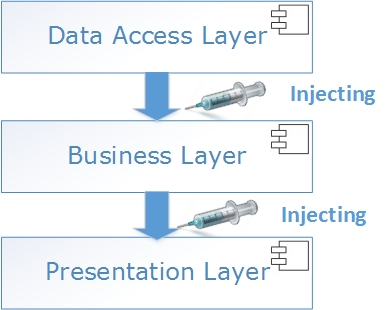 So, we can inject any of the implementation of the DAL to the BL and any of the implementation of BL to the PL.