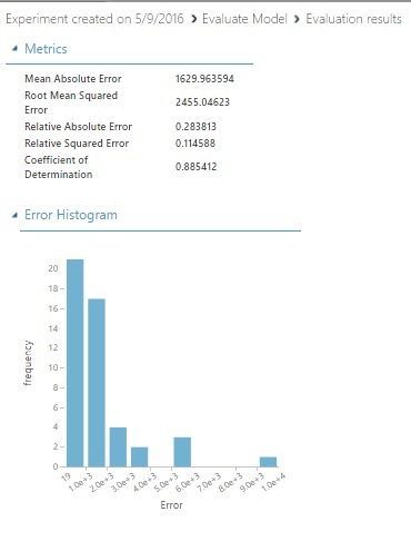 Run the experiment. To view the output from the Evaluate Model module, click the output port, and then select Visualize.