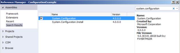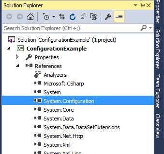 Now, we can see that System.Configuration reference has been added successfully to our project.