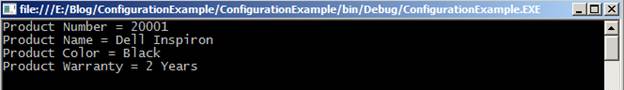 To implement it inside the configuration section, we are going to change the type of “ProductSettings” as “ConfigurationExample.ProductSettings”, which will return all the properties of DellFeatures class.