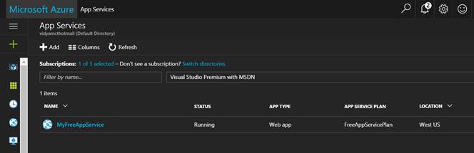 Verify details and click “Create”. Your Free App Service deployment will start and you will notice that your “MyfreeAppService” appears under “App Services”.
