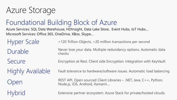 - Azure Storage is focused on being the most open platform for the client data regardless of what devices or architectures.