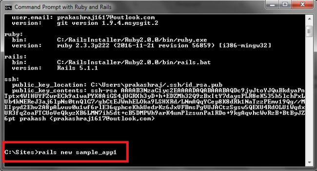 - Open the Ruby On Rails Command Prompt By Going To Start >> All Programmes >> Railsinstaller >> Command Prompt with Ruby and Rails.