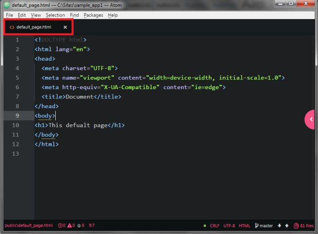 - Now you create one folder in sample_app1/public directory then put that HTML file in that folder. Check the browser and search htttp://localhost:3000/sample/default_page.html.