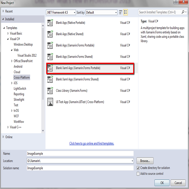 Click C# -> Cross Platform -> Cross Platform app (Xamarin.Forms.Portable).