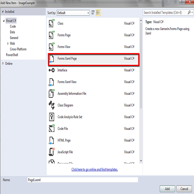 Open Page1.Xaml and add the code in this page.