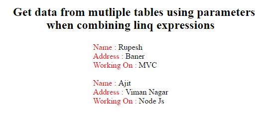 In this article, you learned the basics of how to get data from multiple tables using parameters when combining LINQ Expressions, using repository pattern.