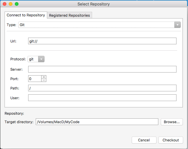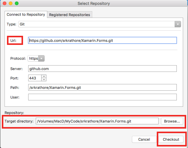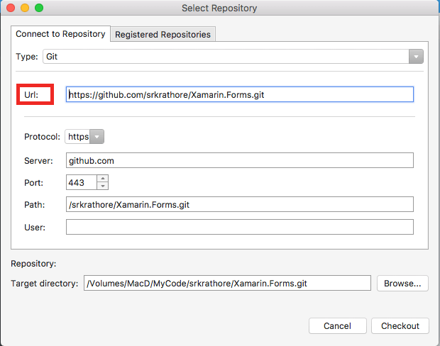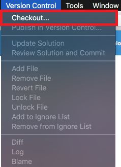 Open Xamarin Studio (to clone the repository on your Mac) and click on Version Control–> Checkout... option.