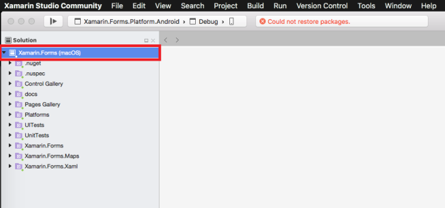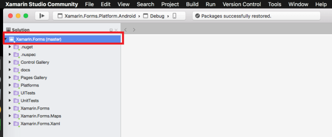 Xamarin Studio will download the master branch of the code and open the solution in Xamarin Studio.