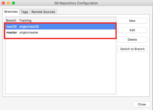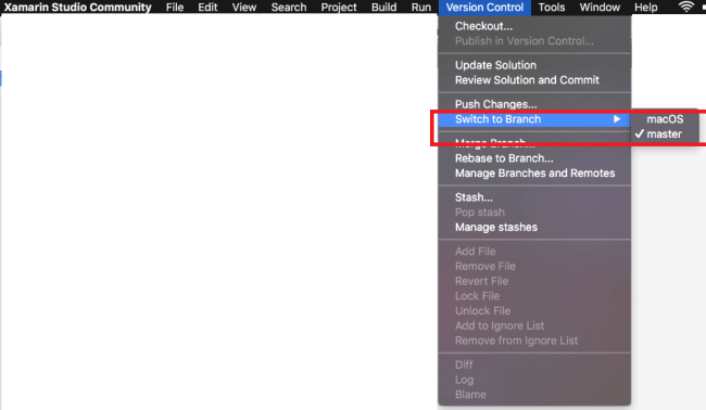 Click on Version Control menu and you will see that now there is a new option ‘Switch to Branch’ giving an option to change the branch as the below Image. It will still be showing the master branch as checked, click on macOS branch to clone and open.