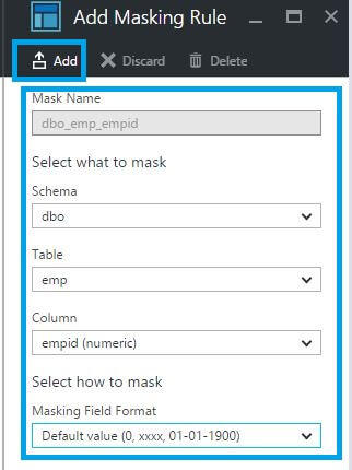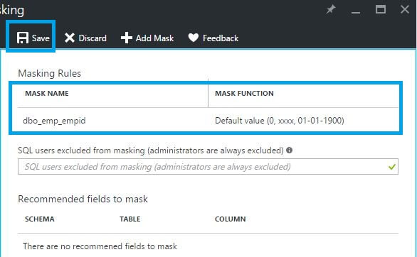 Save in the data masking rule blade, to update the set of masking rules in the dynamic data masking policy.