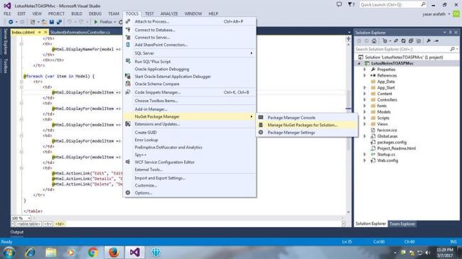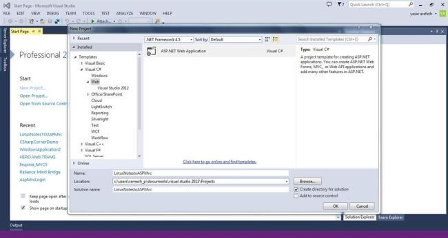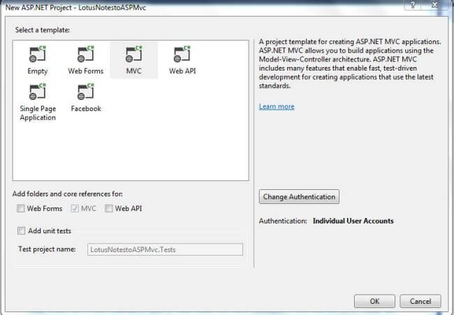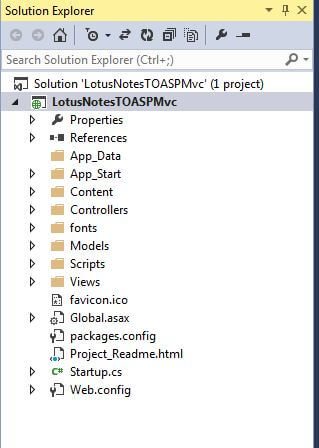 Create a ASP MVC project . Here, I have created a project named "LotusNotestoASPMvc", using Visual Studio 2013.