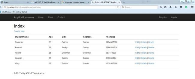Create a model , select Model Folder > Right Click -> Add new class and name it as "StudentDetails" and click ok. Now, write the code given below in your model.