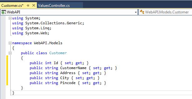 Now, create a new class in Models folder and add properties for our requirement. Here, we are going to create customer details.