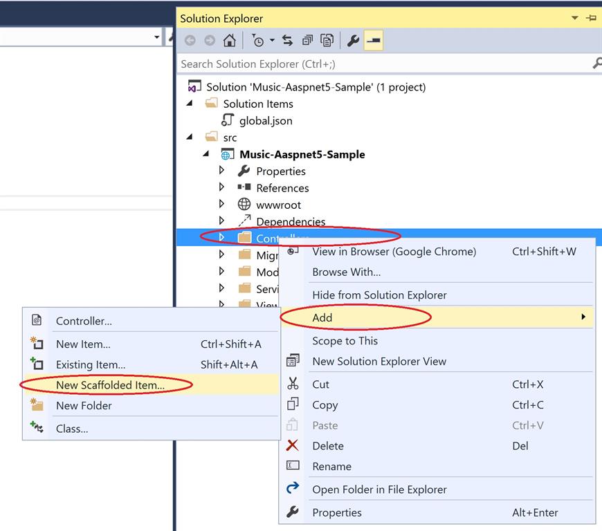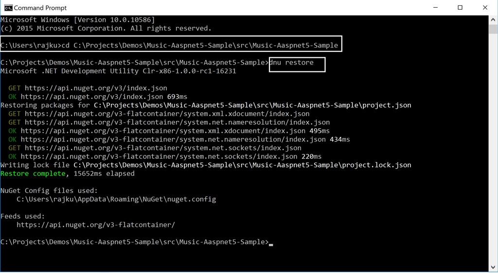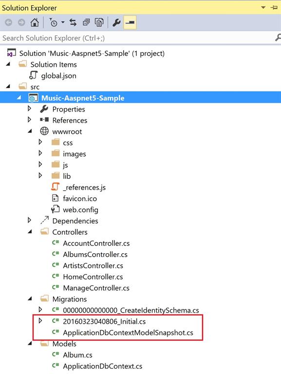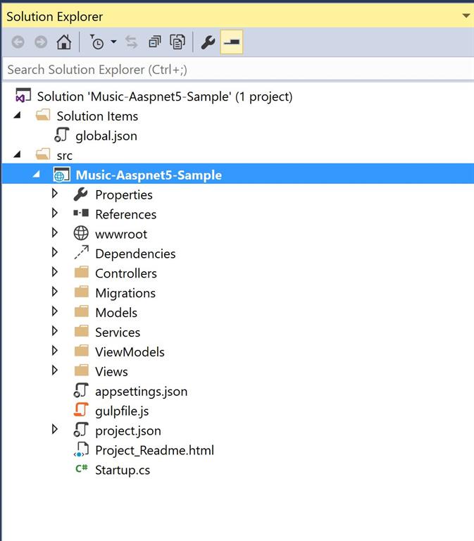 - project.json – It defines .NET execution environment (DNX) project. It is the project.json file that contains all the information that DNX needs to run and package your project.