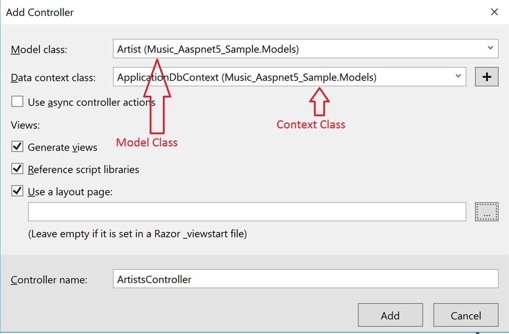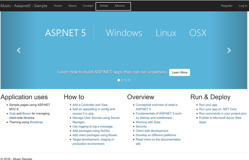 Now add navigation for redirect to Artist and Album pages in Views/Shared/_Layout.chtml