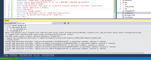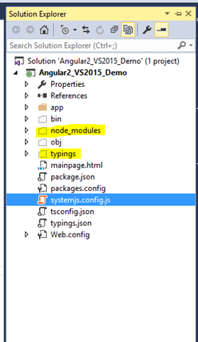 Click on show files in solution explorer to see the node_modules and typings folder added into the project.