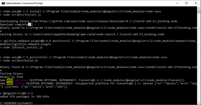 This will start Angular CLI installation on your machine. This is going to take some time; so sit back, make some coffee, and relax.