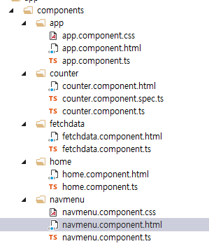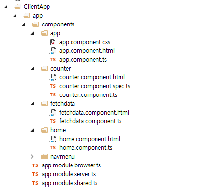 Same like this, we can also find the default Counter and Fetch data from API sample component and the HTML file has been added by default. If we want, we can change that to our requirement or we can create our own component and HTML files.